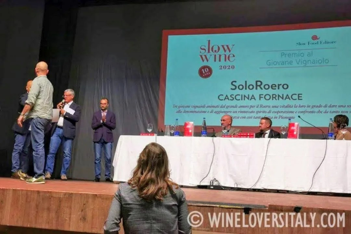Il premio al giovane vignaiolo è andato in realtà ad un gruppo, SoloRoero, composto da Alberto Oggero, Valfaccenda e Cascina Fornace: vinificano nebbiolo e arneis, le tradizionali uve locali, con sapienza e tanta passione.