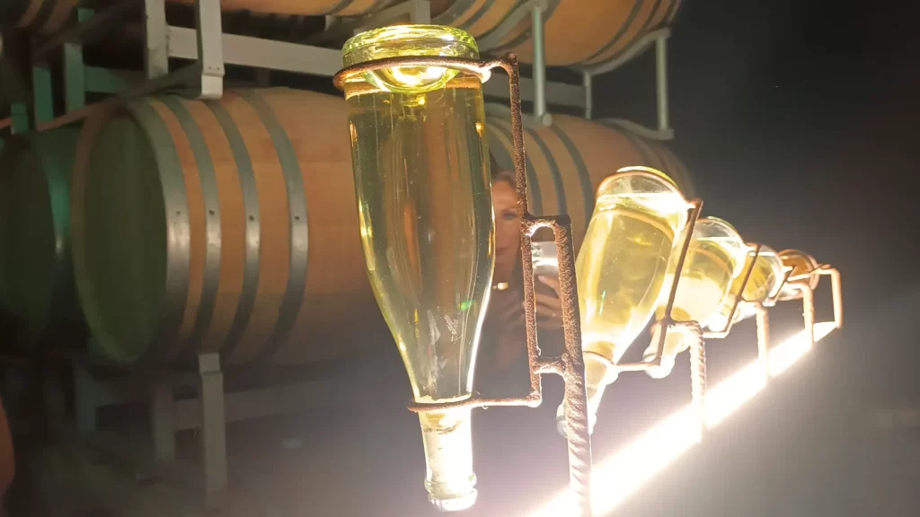 Castello di Bossi però conserva anche una strepitosa effervescenza, in una segreta delle antiche strutture, una grotta con una lunga fila di pupitre, basta solo un dégorgement ed è fatta, un’esperienza tutta di qualità.
