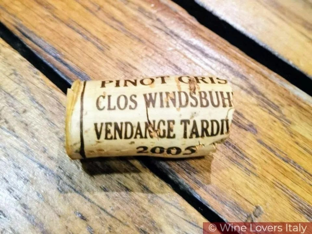 ma dopo una versione secca stupendo di Muscat a Petit Grains Goldbert Granc Cru 2018 ecco infinito una Vendage Tardive Pinot Gris 2015: vendemmia iniziata l’8 ottobre e finita il 2 novembre in cui la muffa nobile si è meravigliosamente espressa, come non capita tutti gli anni, 92 g/ litro il residuo zuccherino.