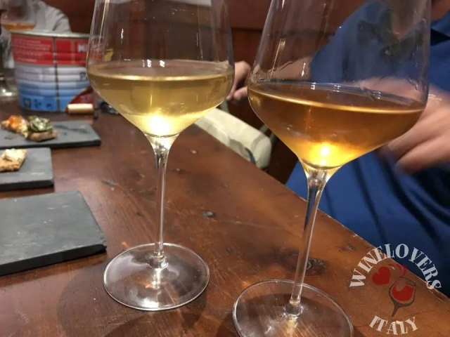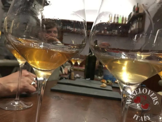 All’assaggio si conferma pieno, potente, ma sorretto da un’acidità piacevolissima e percorso da una vena tannica che davvero ci fa pensare ad un orange wine di altre zone italiche.