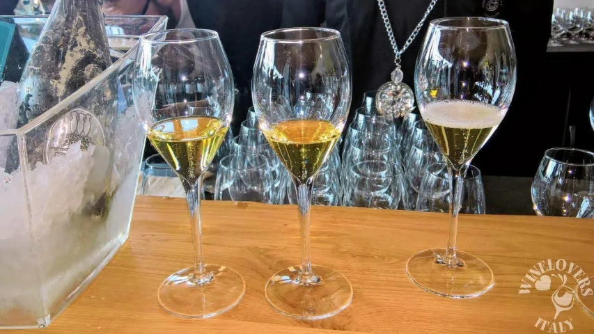 Bollicine finissime, naso complesso con sentori di crosta di pane, florale e di frutta a polpa gialla, bella persistenza e chiusura sapida.