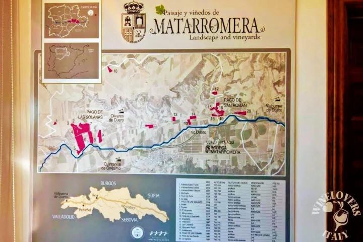 L’azienda conta su cento ettari, distribuiti nei “pagos” più prestigiosi della zona (Pesquera, Valbuena e Olivares de Duero). La varietà di uva dominante è il Tempranillo, o Tinta Pais, che si presta ai forti contrasti metteremo logici ed alle escursioni termiche giorno notte.