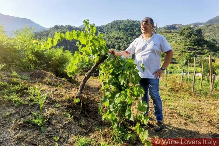 (in dialetto Giaè) sono i terreni di proprietà, a cui si sono aggiunti altri che ha voluto recuperare, uno in collina e un altro – la fine del mondo- a strapiombo sul mare, sulla collina del Mesco. Si percepisce un sano e coinvolgente entusiasmo che anima le sue descrizioni, il non perdersi d’animo, neppure di fronte alla grandinata che nel 2018 gli distrusse il raccolto in un vigneto, il cercare di migliorare e di andare avanti.