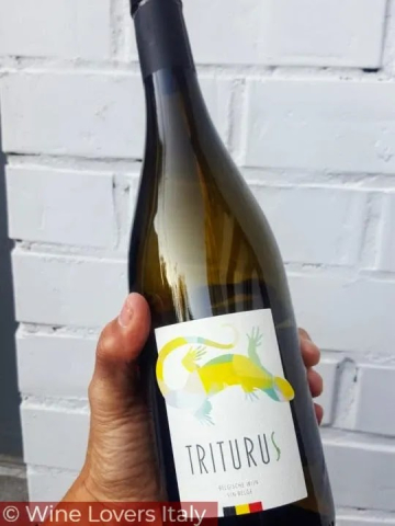 ià l’etichetta ha attratto il mio sguardo… quella che mi sembrava una lucertola stilizzata verde è un tritone crestato, anfibio della famiglia delle salamandre il più grande dei tritoni in Belgio: in latino triturus.