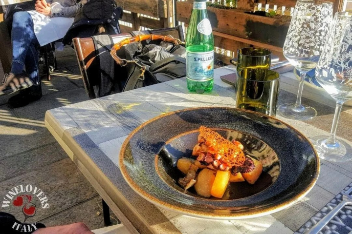 una vellutata di zucca alla salvia con crostino croccante al lardo di Colonnata in cui la tendenza dolce del piatto era in perfetta armonia con la sapidità e il finale delle erbe aromatiche.