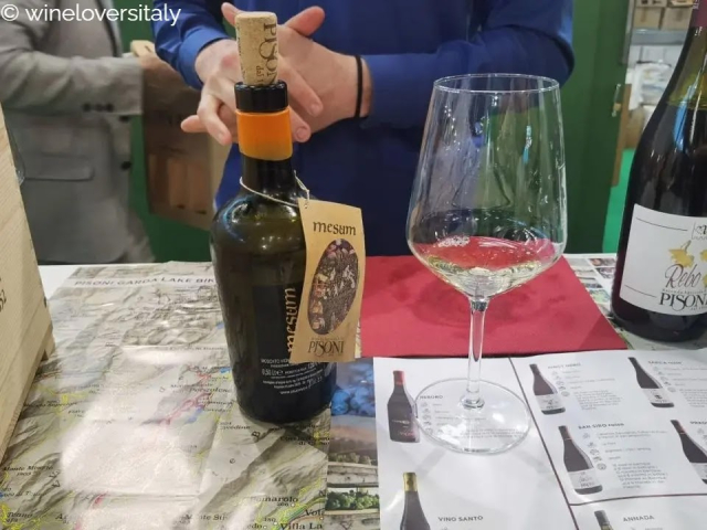 Il vino che propone in anfora è il Mesum, ottenuto da vitigni PIWI messi a dimore franchi di piede in un vigneto che riprende fedelmente l’Affresco di ottobre de “IL Ciclo dei Mesi” del XIV secolo, che possiamo ammirare sulle pareti della Torre dell’Aquila presso il Castello del Buonconsiglio a Trento.