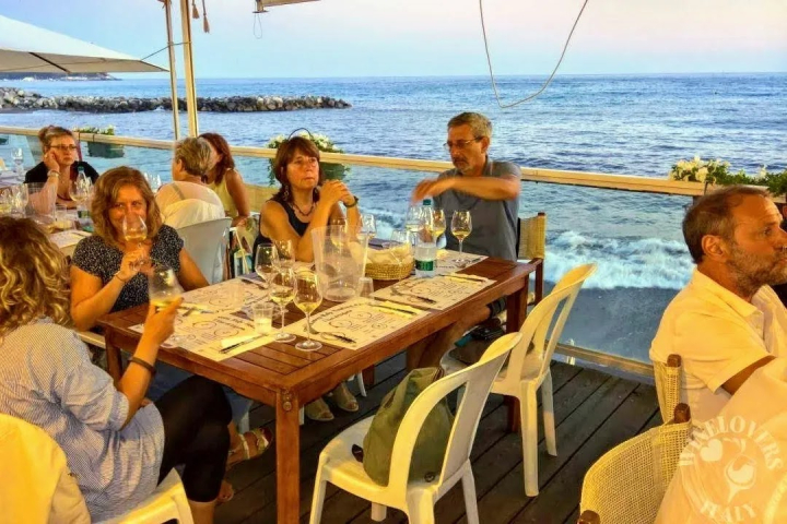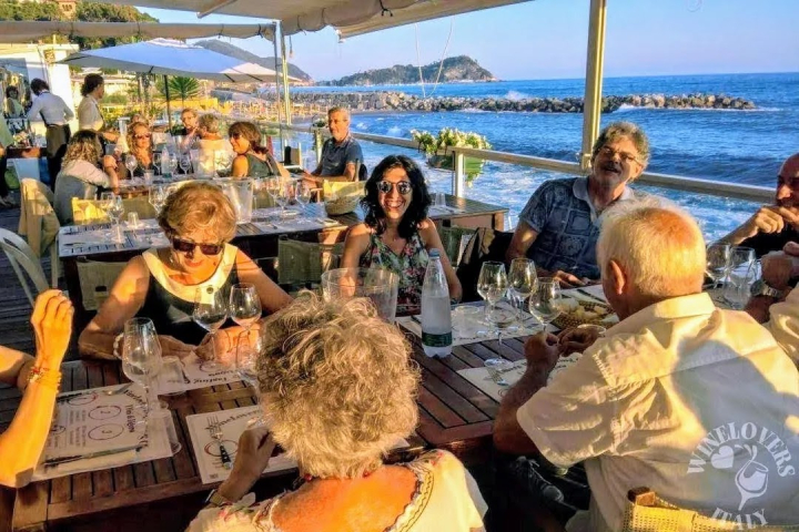 a location sono i Bagni Giovanni di Cavi Borgo dove una terrazza affacciata sul mare permette agli ospiti di degustare i vini di Liguria godendo della vista di uno spettacolare tramonto.